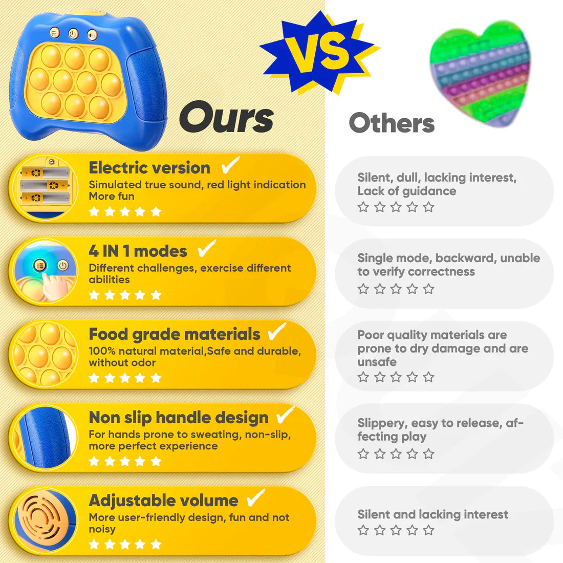Sound and light button game, play with responsiveness; the product has a silent mode that can be selected too! 🔕